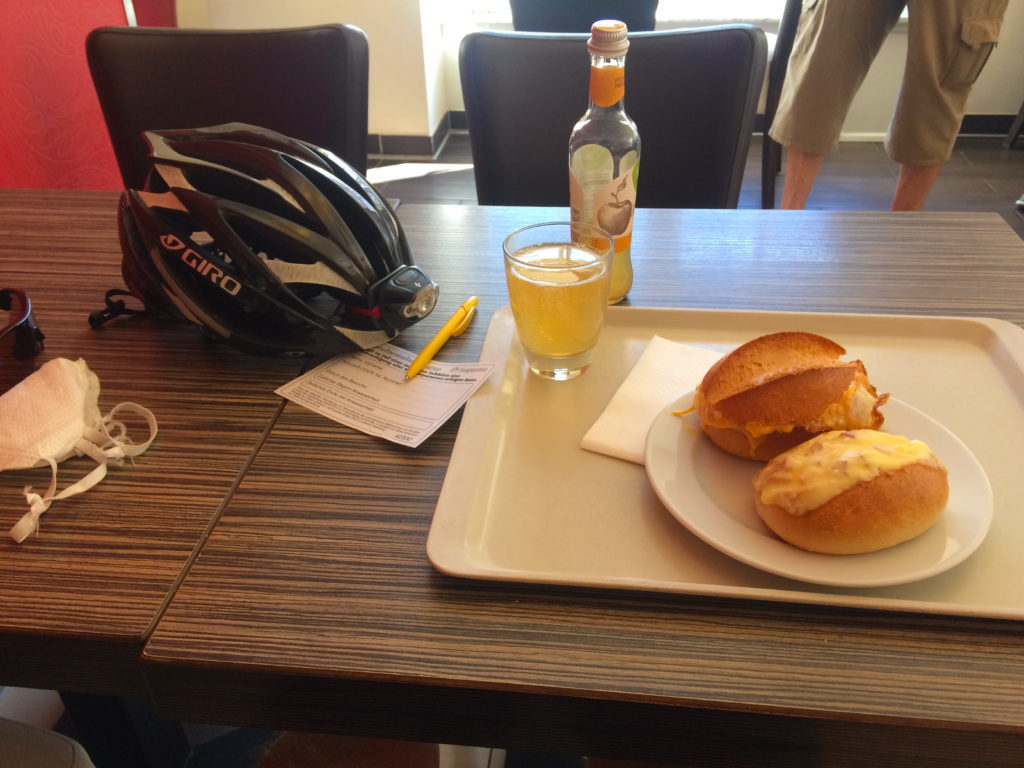 Zuletzt war Ch. Beyer’s Isomatte ab dem fünften Tag undicht. Während des Einschlafens war noch Luft drin, die dann langsam entwich und Ch. Beyer nachts aufwachen ließ. Zum Glück waren die Temperaturen im Verlauf des Sweet-16-Bikepackings stetig gestiegen, so dass der Isolationseffekt nicht mehr notwendig war. Der fehlende Komfort konnte durch optimale Positionierung, mit Schlaf entweder in fetaler Position oder auf dem Rücken, zumindest teilweise ausgeglichen werden.