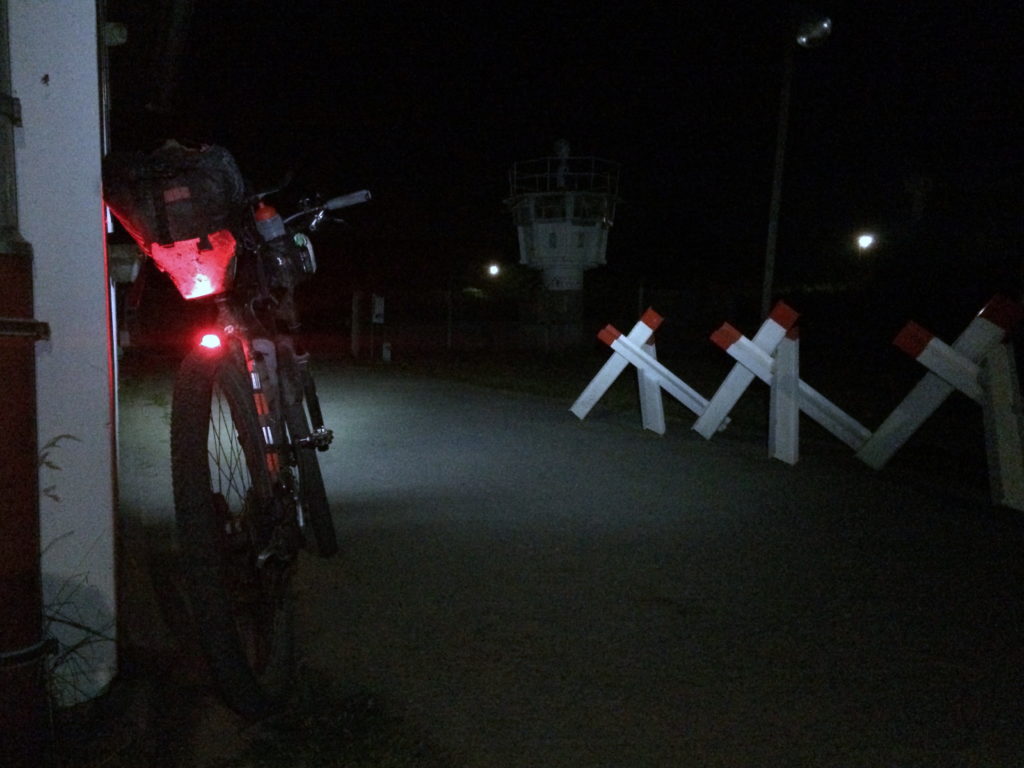Die Geschichte mit dem Dixi-Klo, das Ch. Beyer im Ballungsgebiet Hamburg vor womöglich unanständigen Notentleerungen rettete, kennen Sie schon. Kurz darauf, es war ja schon halb eins nachts, fand Ch. Beyer einen netten Schlafplatz. In der Garmin-Software heißen Unterstände „Shelters“ und dieses Shelter war eine kleine Holzhütte, die zu einem Spielplatz gehörte. Ch. Beyer stellte sein Rad ab, machte das große Licht am Rad aus und die Stirnlampe an. Dann wurde Isomatte und Kissen ausgepackt und aufgeblasen. Schlafsack und Bivy kamen darauf. Und parallel dazu hatte Ch. Beyer eine Packung Studentenfutter und 3 Müsliriegel vertiglt. Nachdem er eine lange Hose und Jacke angezogen hatte, konnte er sich zum Schlafen hinlegen und das Licht ausknipsen.